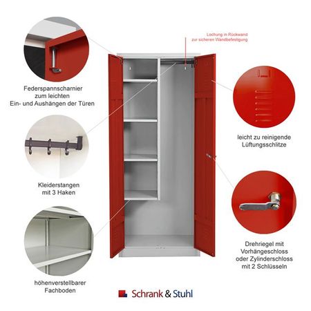 | Produkt | Besenschrank | Putzmittelschrank mit verkürzter Trennwand aus Stahl 180 x 60 x 50 cm |