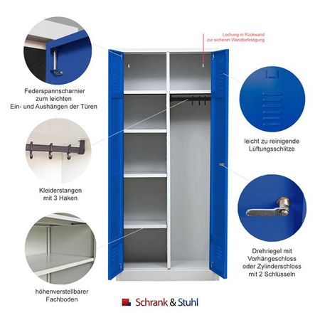 | Produkt | Besenschrank | Putzmittelschrank mit durchgehender Trennwand aus Stahl 180 x 80 x 50 cm |