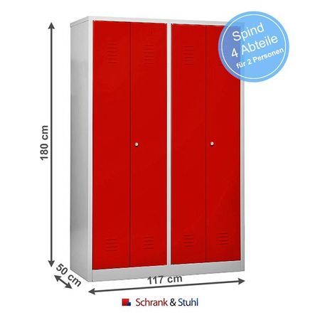 Doppelspind mit 4 Abteilen für 2 Personen | Schwarz-Weiß-Trennung 180x117x50 GRAU/ROT