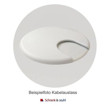 Besprechungsplatz mit viel Beinfreiheit für den Besucher Tischplatte verfügt über zwei Kabeldurchlassbohrungen made in Germany |