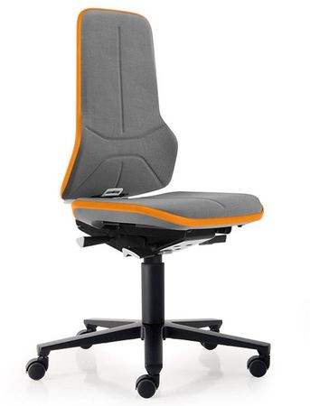 Ergonomischer Arbeitsstuhl für den Produktionsbereich - mit Rückenpermanentkontakt, Rollen und Supertec-Bezug