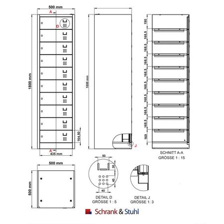 Schließfachschrank | Laptopschrank 10 Abteile 180x50x50
