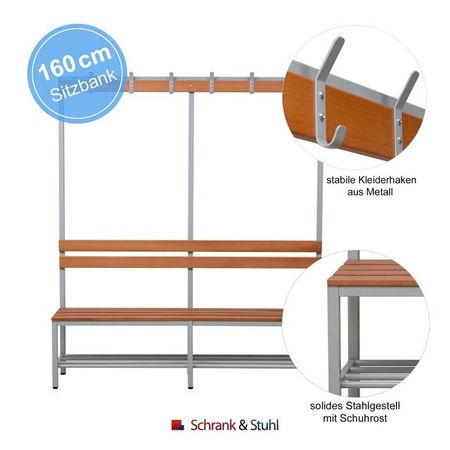 | Produkt | Sitzbank | Garderobenbank - 160 cm doppelseitig mit Schuhrost und Hakenleiste | |