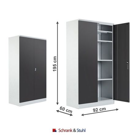 | Farbe | Korpus: RAL 7035 (lichtgrau) und Türen: RAL 7016 (anthrazit) |